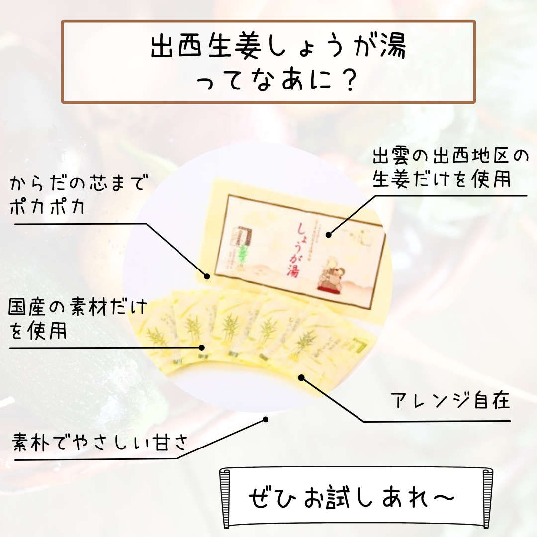 🍵 そんな温活にぴったりなのが「出西生姜しょうが湯」!