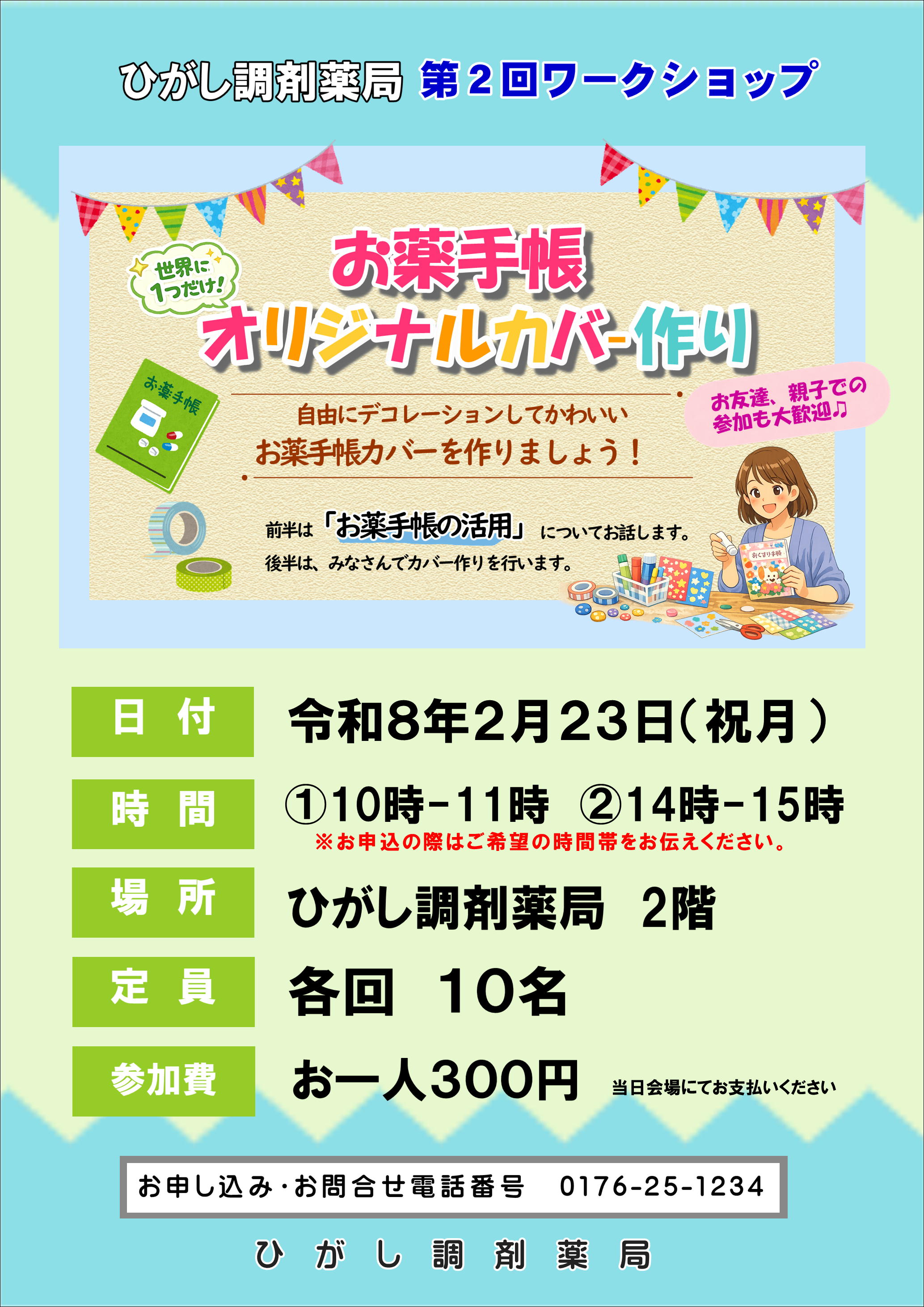 今回のワークショップは「お薬手帳オリジナルカバー作り」です。