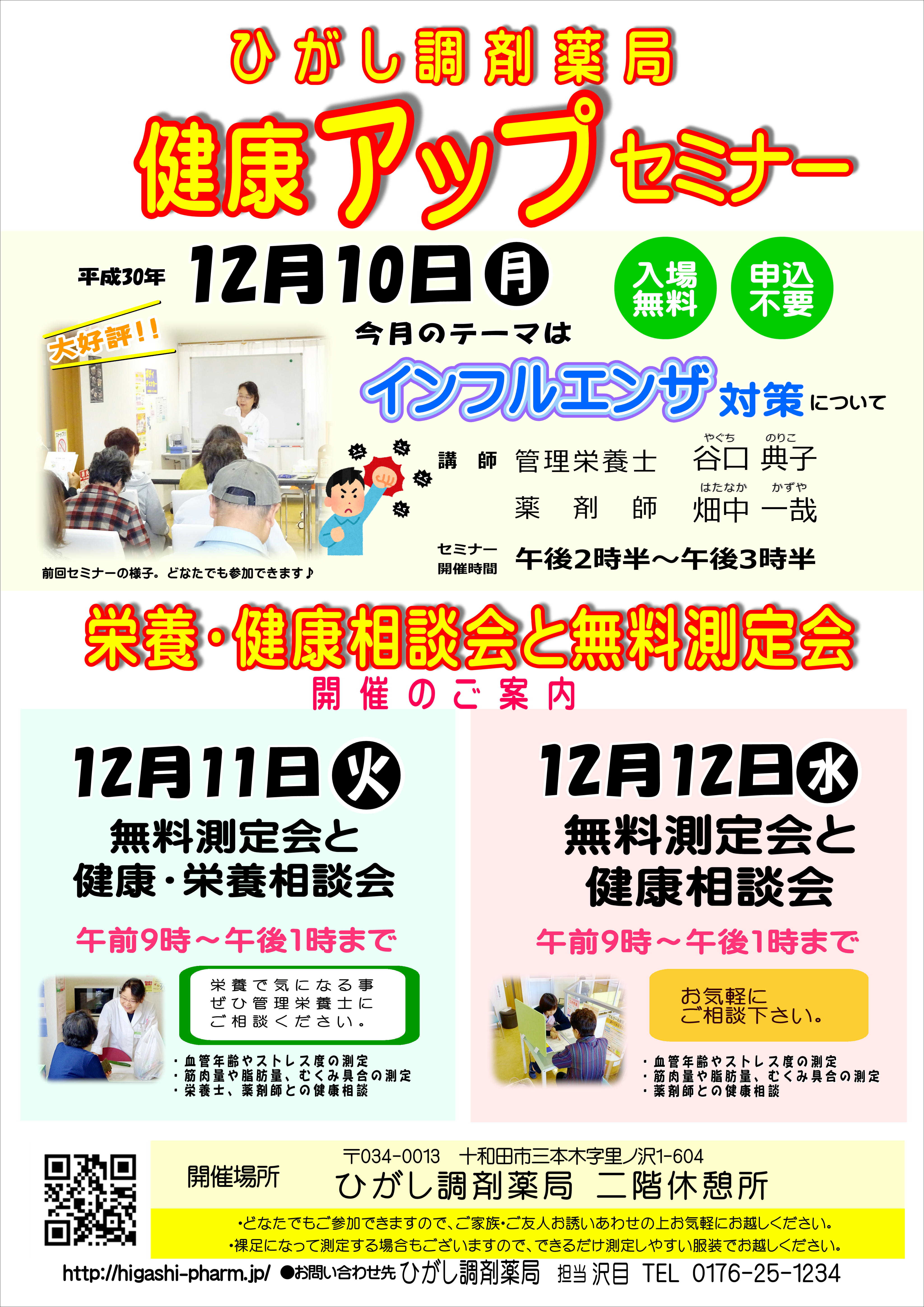 12月10日(月) セミナー「インフルエンザ対策」 14:30~15:30